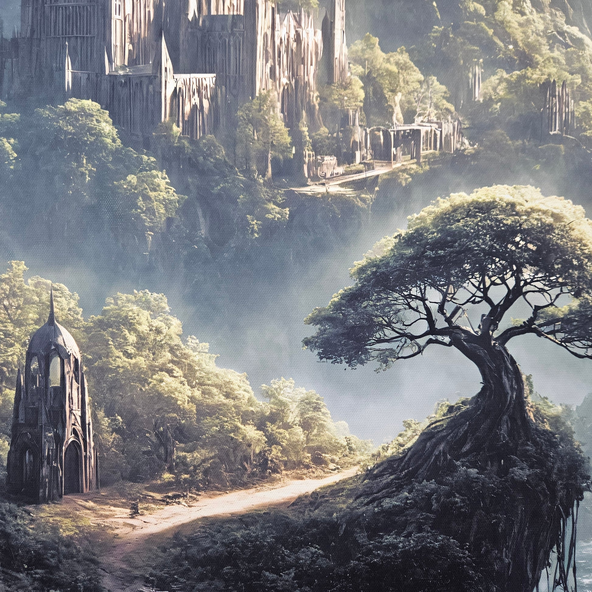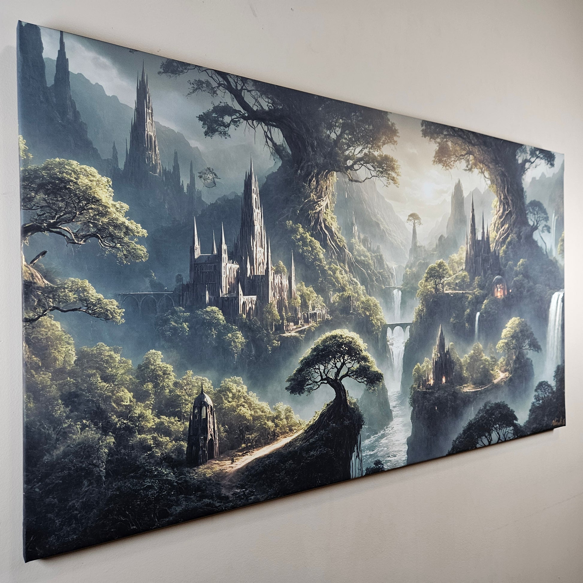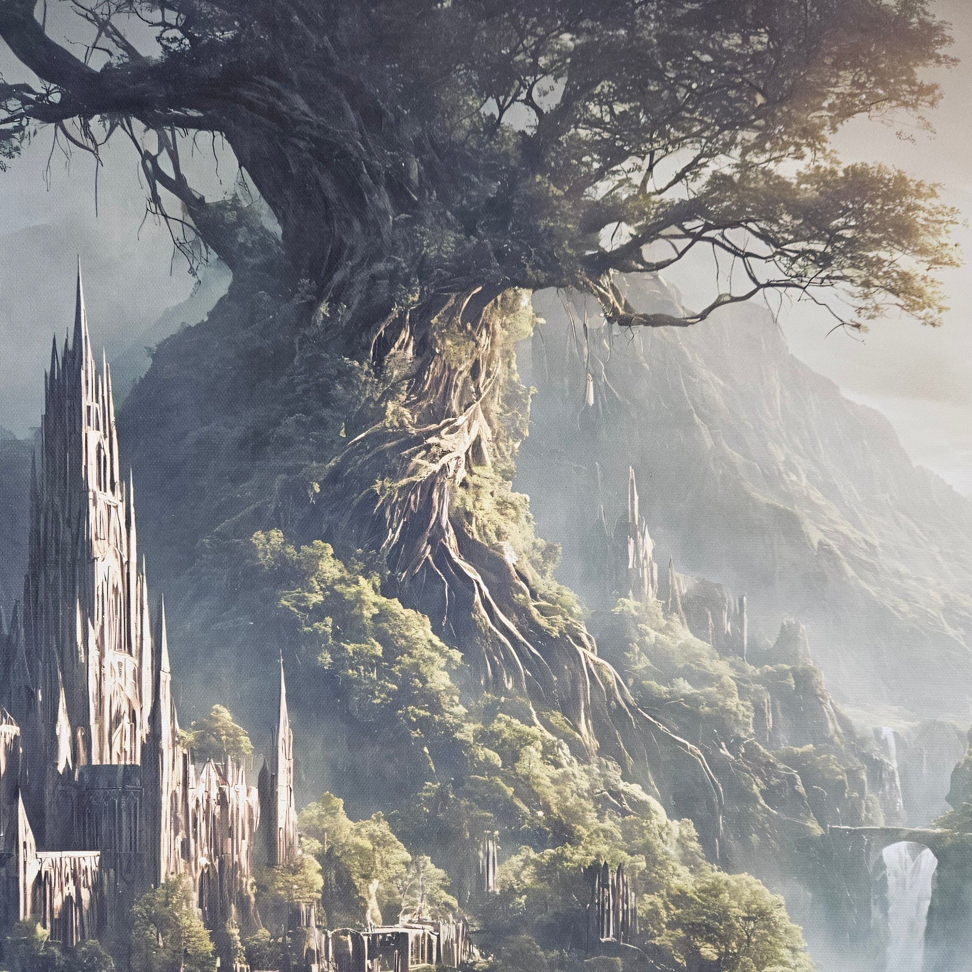 This artwork blends ethereal beauty with epic world-building, making it perfect for collectors seeking a serene yet majestic fantasy environment that feels like a real, living realm.
