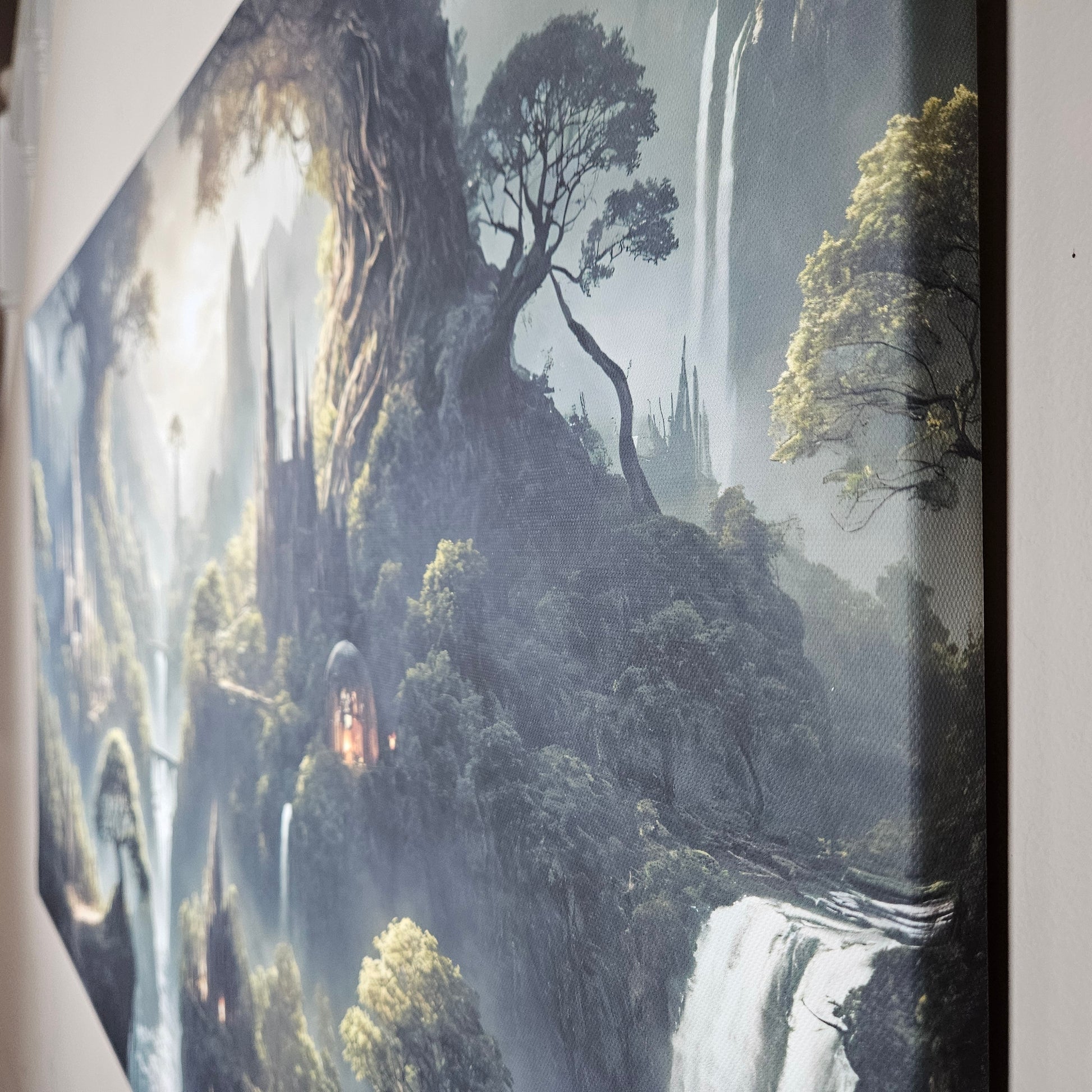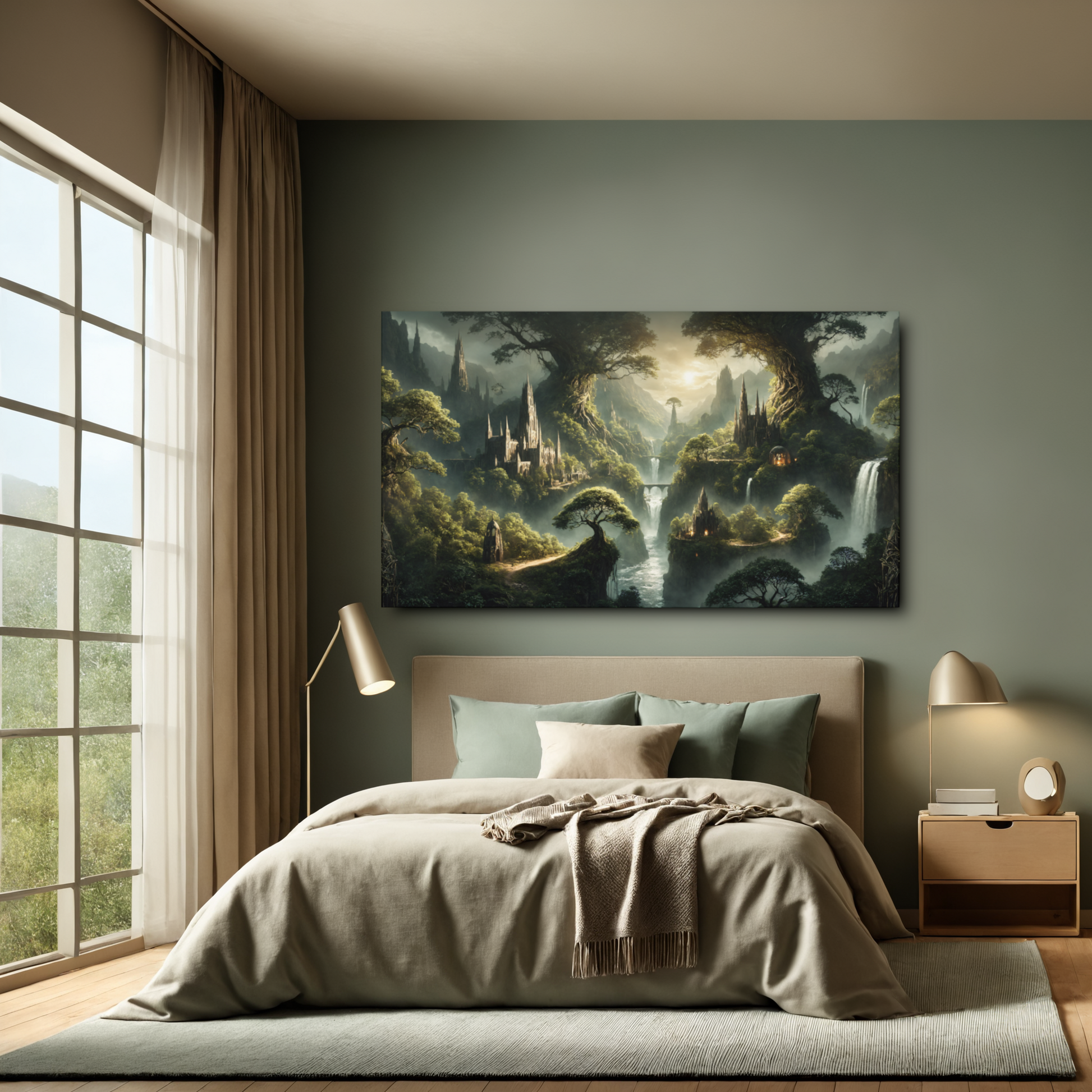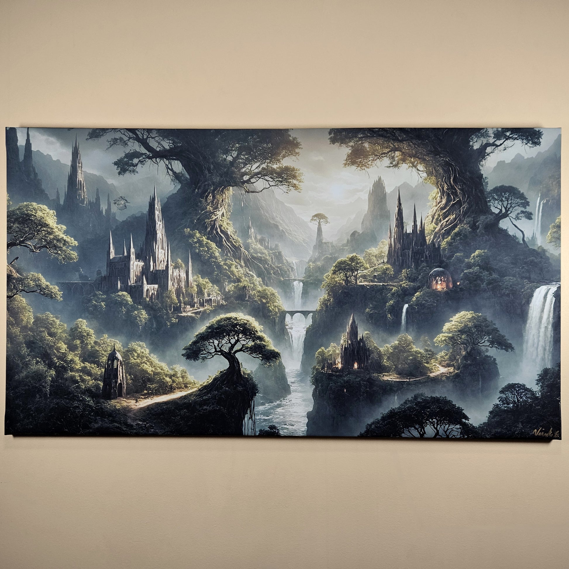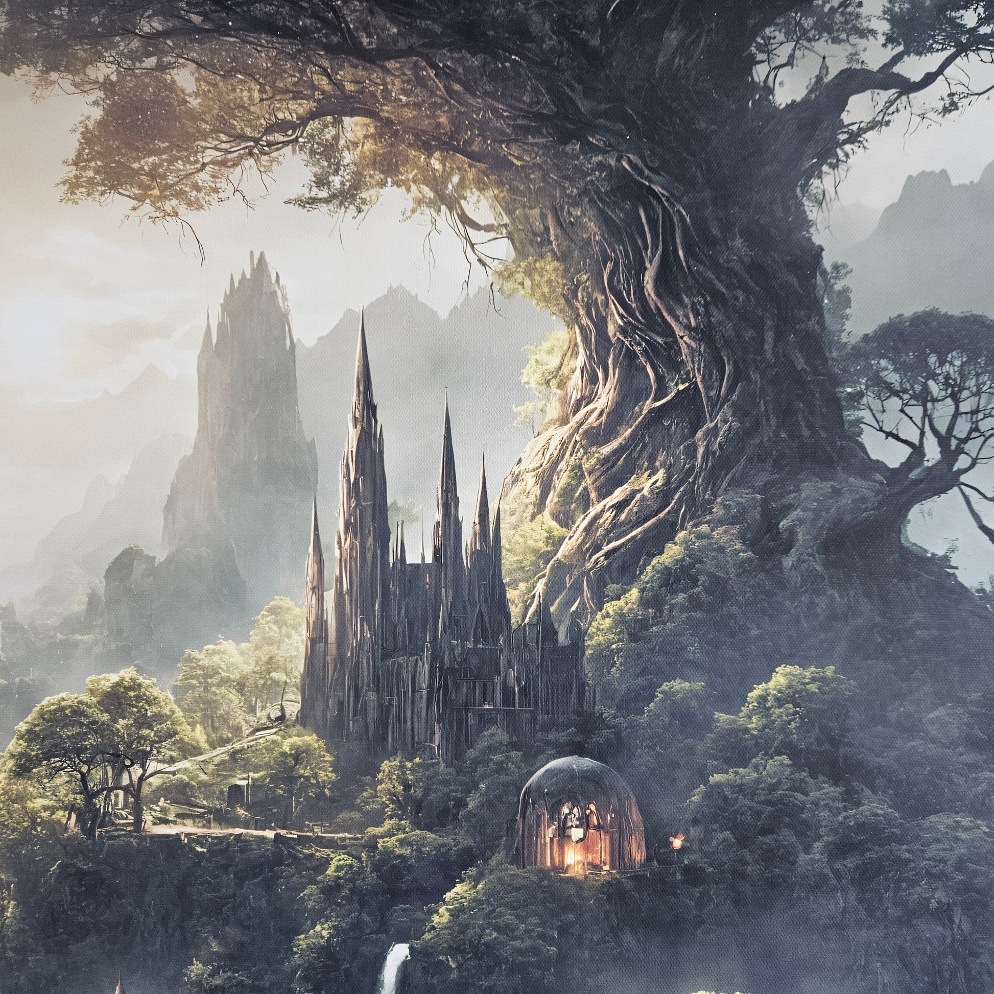 This artwork blends ethereal beauty with epic world-building, making it perfect for collectors seeking a serene yet majestic fantasy environment that feels like a real, living realm.
