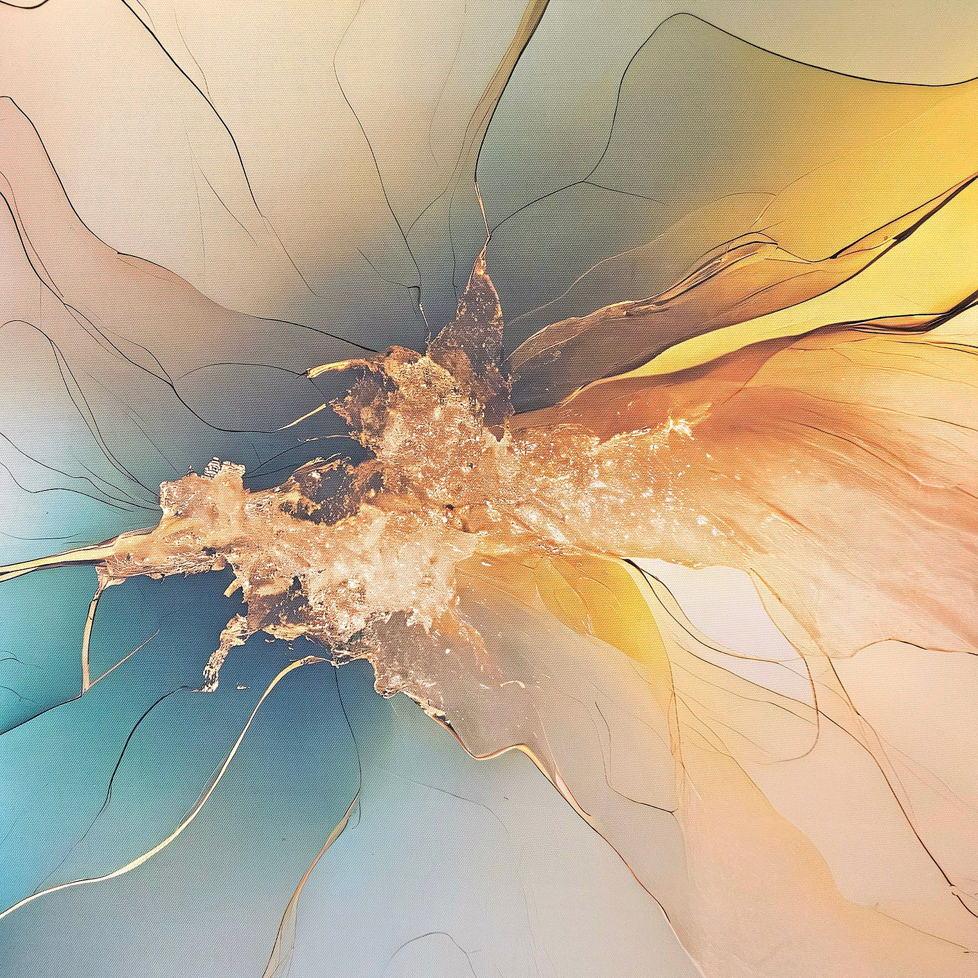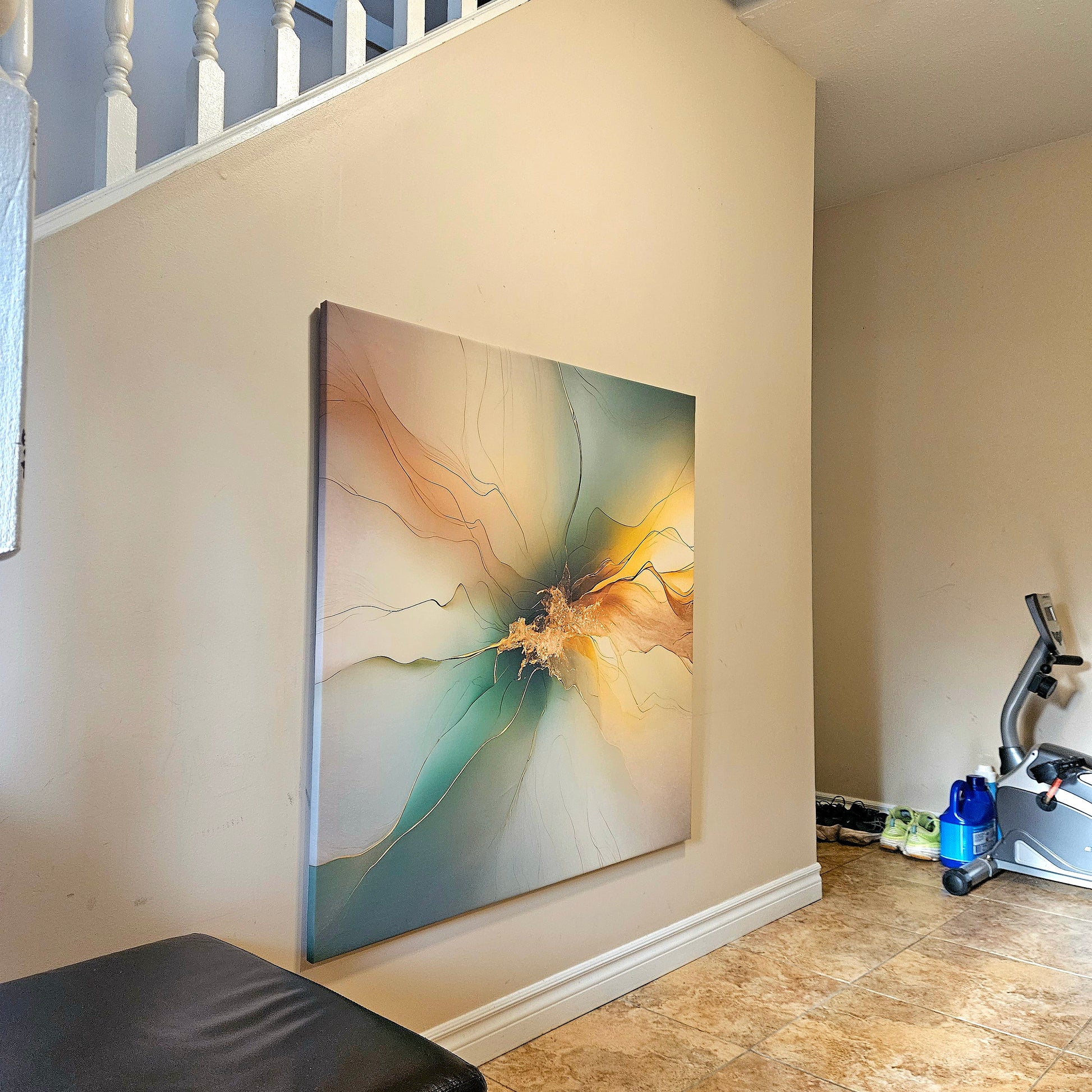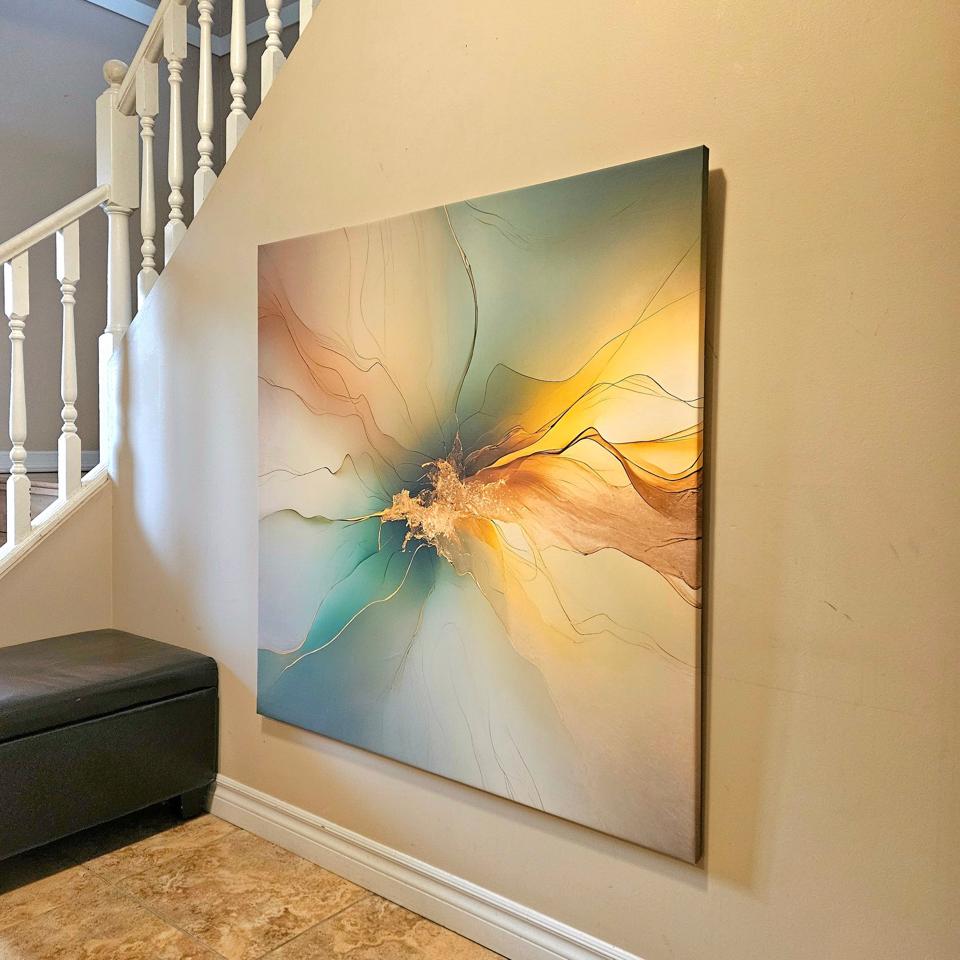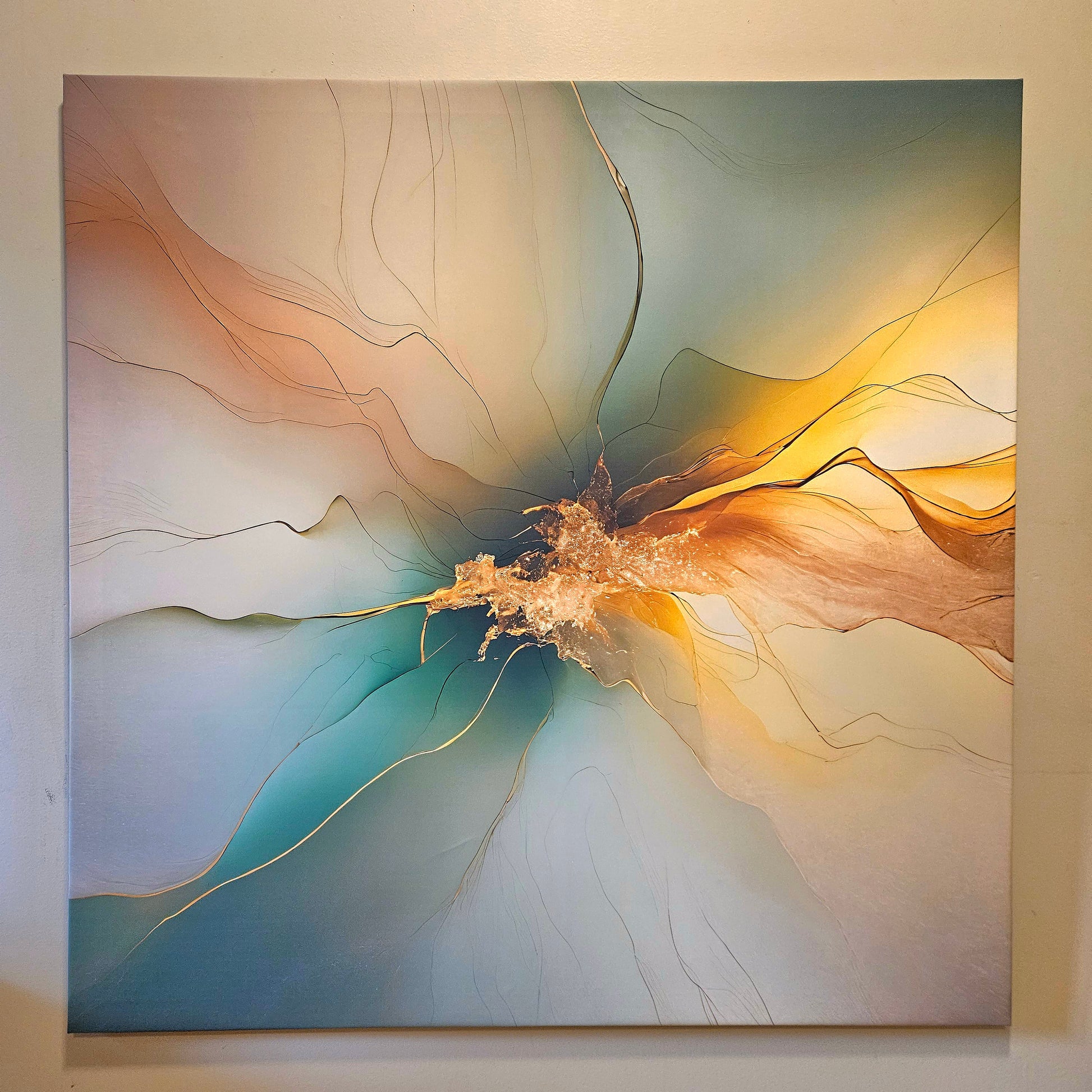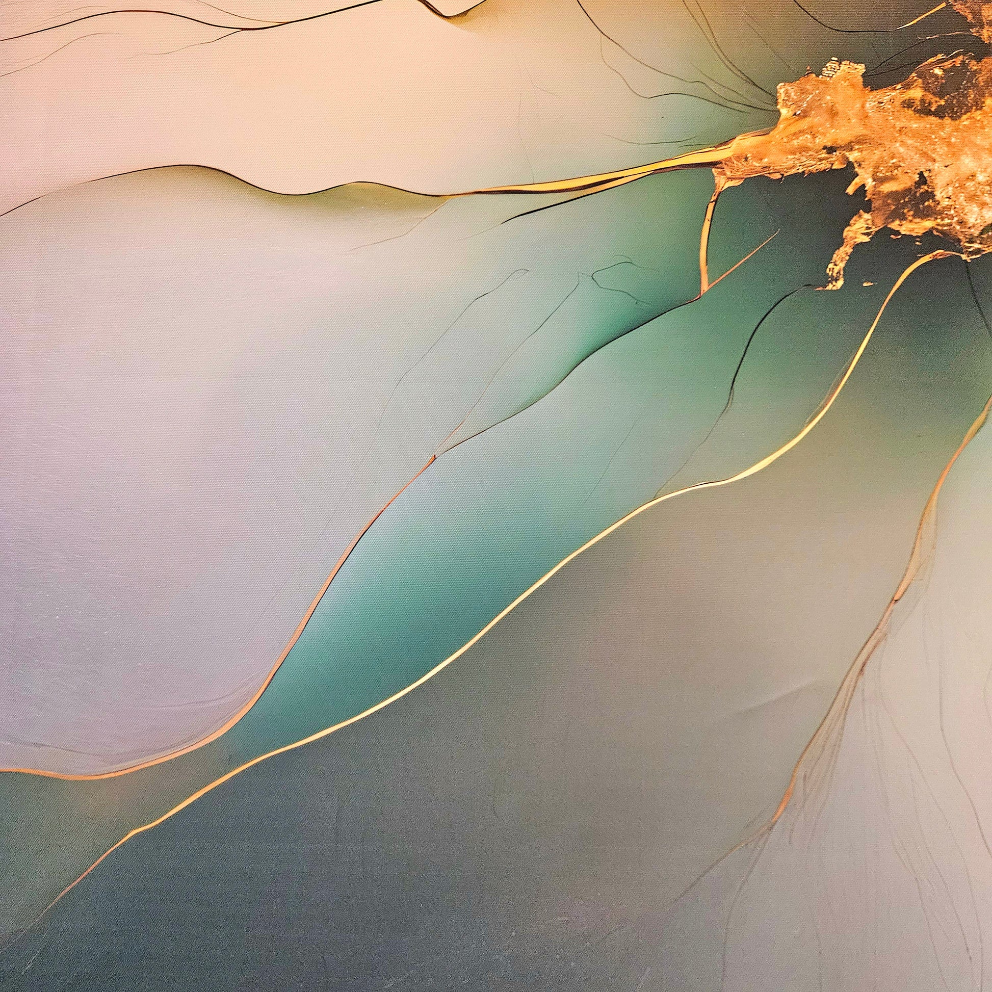 Experience the ethereal beauty of "Emerald Radiance," a captivating abstract artwork that flows with vibrant greens and warm golds. This piece draws inspiration from the natural energy of light and motion, featuring delicate lines and radiant hues that create a harmonious balance of tranquility and vitality.