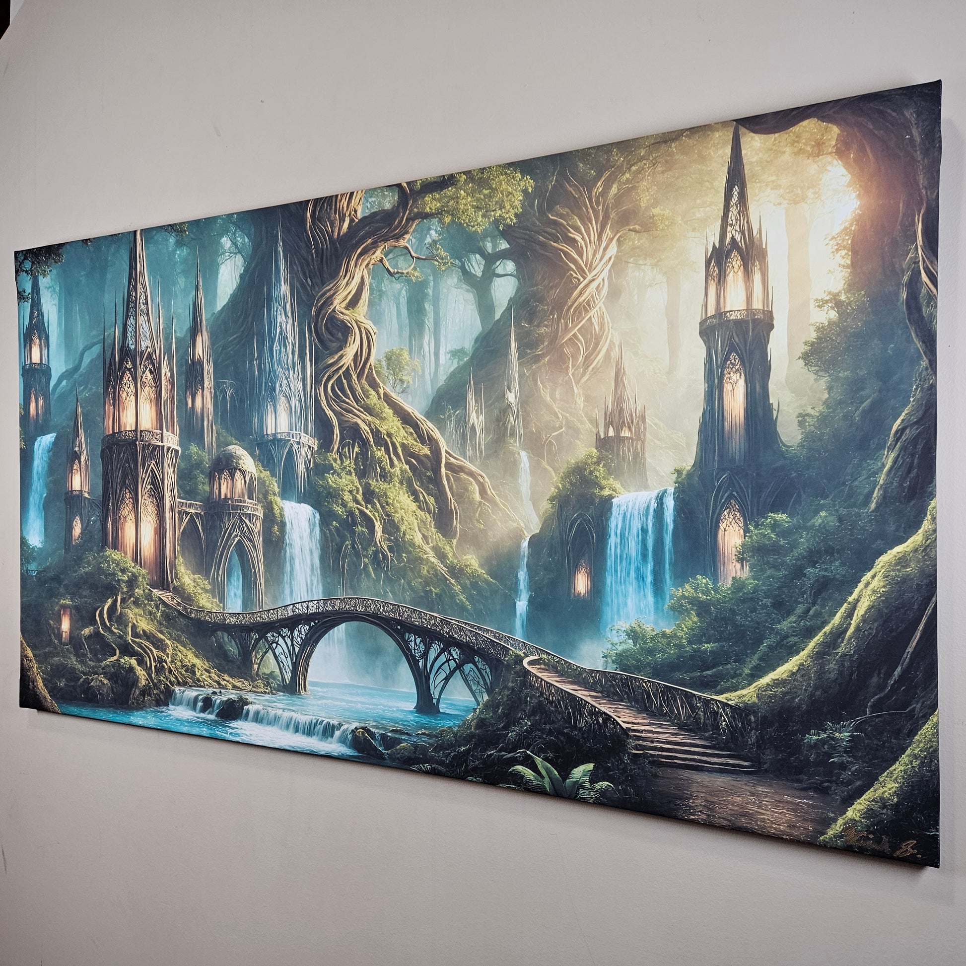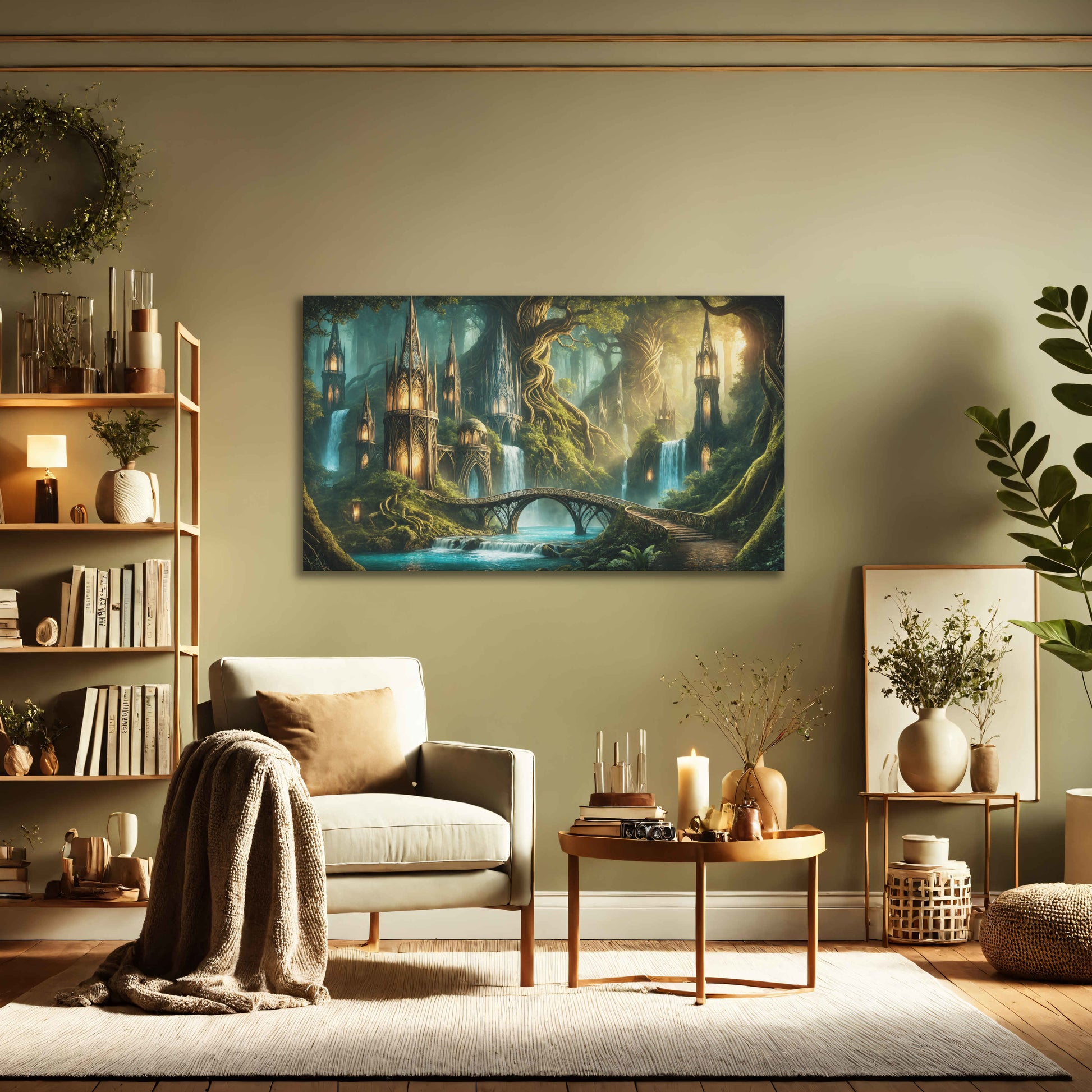 The curved walkway leads you through a world where nature and architecture flow together seamlessly — serene, majestic, and alive with quiet wonder. Perfect for fantasy lovers, collectors, and anyone seeking a calming yet awe-inspiring centerpiece for their home.