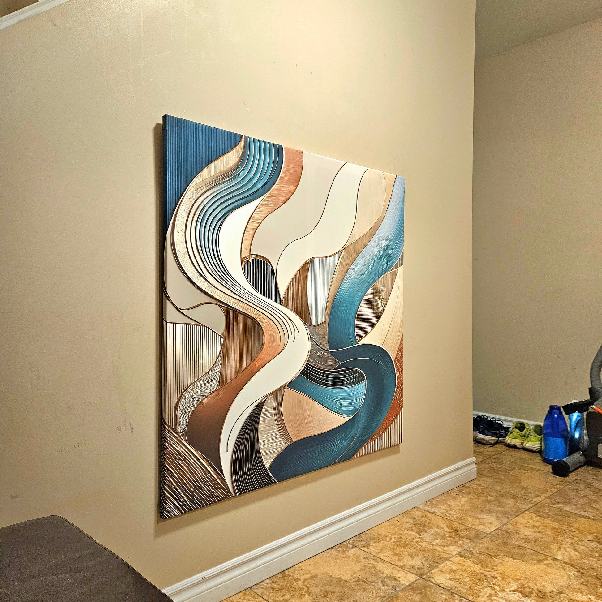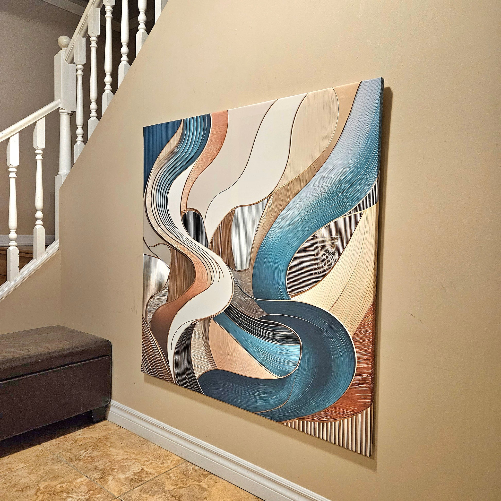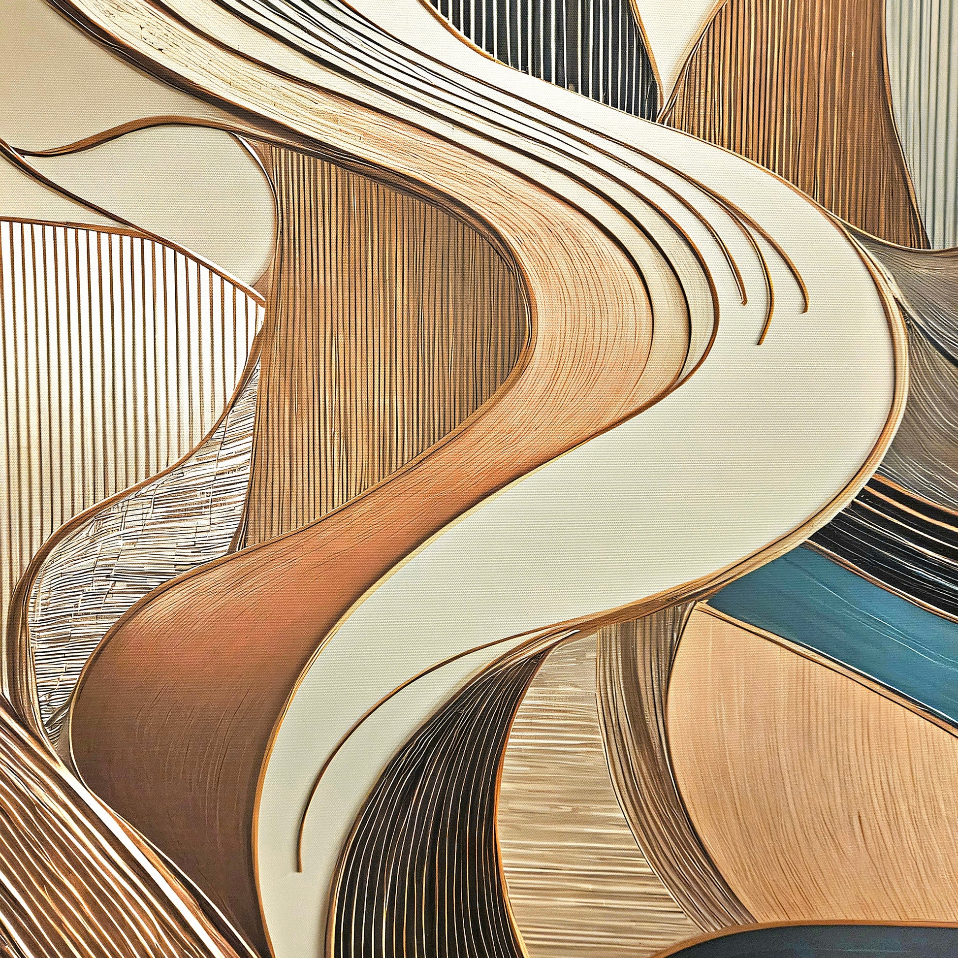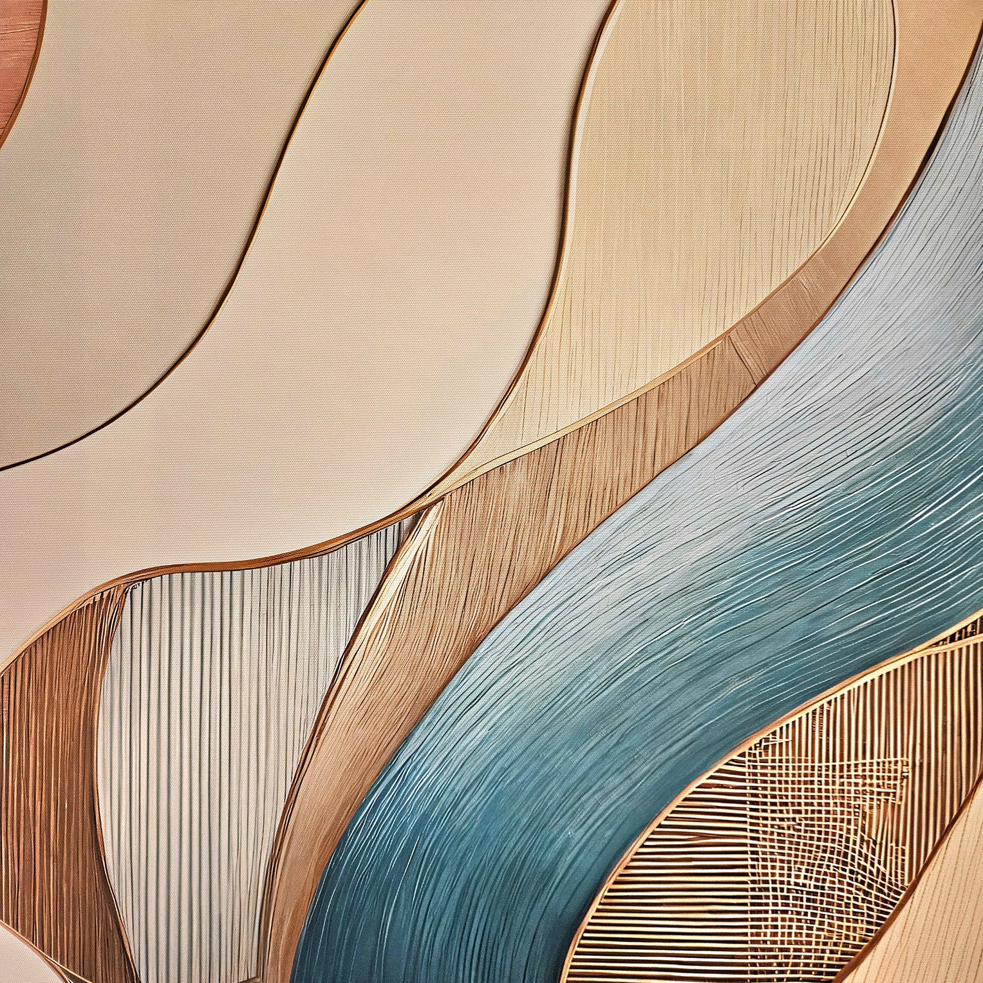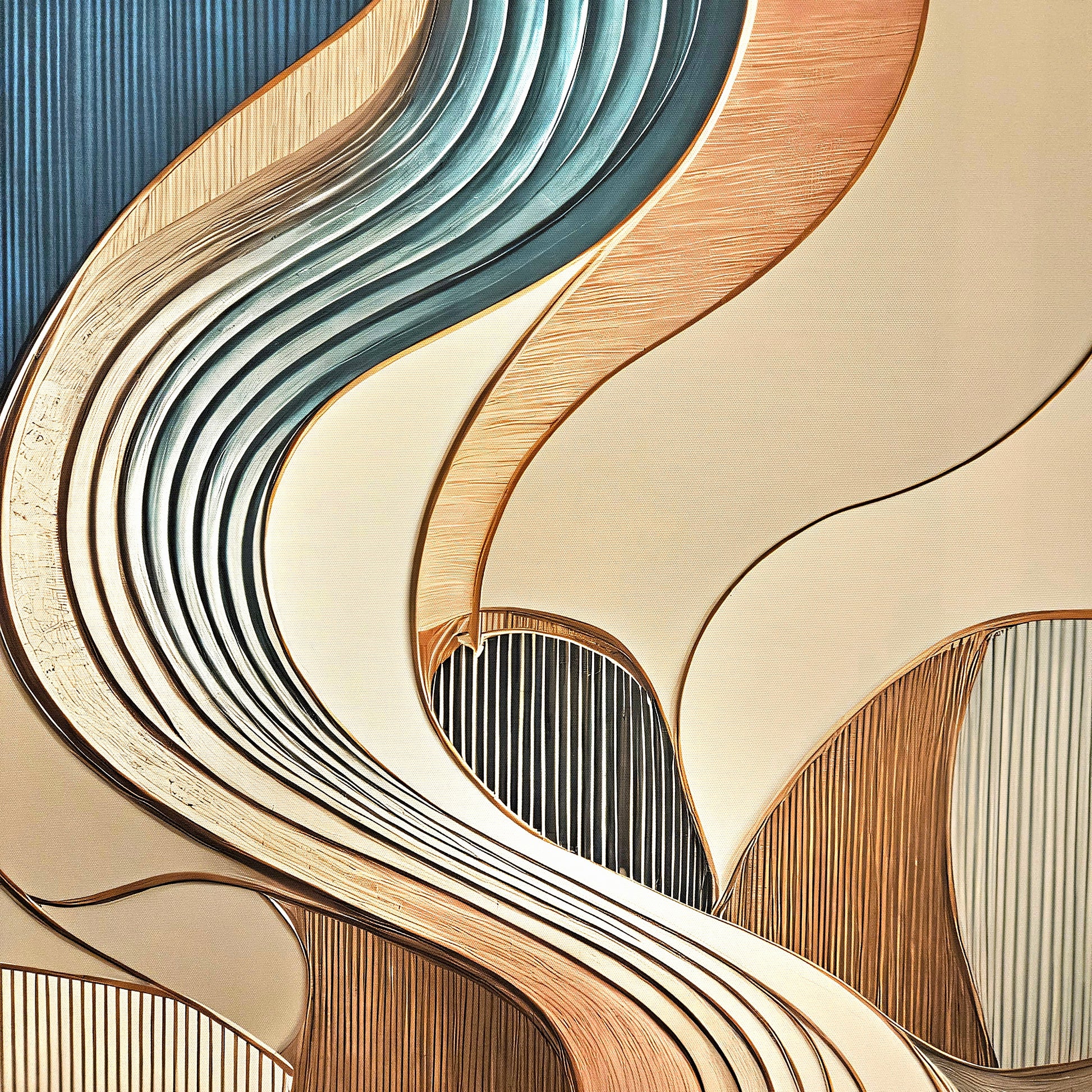 Discover the soothing elegance of "Serene Flow," an abstract masterpiece that combines fluid motion with a soft, harmonious palette of teal, copper, and ivory. This artwork captures the essence of graceful movement and balance, making it an ideal choice for enhancing modern interiors with a touch of sophistication. Whether adorning a living room, office, or creative space, this piece adds timeless charm and a sense of tranquility.